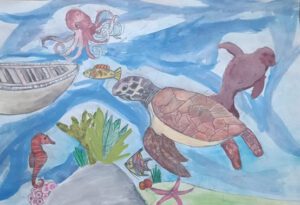 במקום הראשון בקטגוריית ציור זכתה אריאל שטרית, תלמידת חטיבת בר לב, שהגישה ציור שציירה של קהילת היצורים השוכנים בין ספינה טבועה בשונית אלמוגים, החיים יחד בהרמוניה ושלווה. זאת מתוך התעניינותה בנושאי אקולוגיה וקיימות, תוך שהיא מבצעת מחקר בנושא טרם יצירתה.