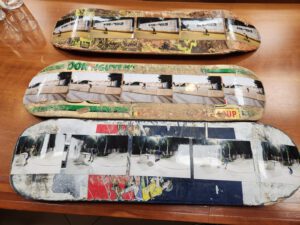 במקום הראשון בקטגוריית צילום זכה עידן שילה, תלמיד תיכון גלילי, שצילם מצגים של סקייטבורד, מתוך אהבתו לתחום בו הוא עוסק בארבע השנים האחרונות. “רציתי לתת פרספקטיבה אחרת על המשמעות של סקייטבורד”, הוא מסביר. “כדי לעשות את העבודה, צילמתי שלושה אנשים בשלושה מיקומים שונים בעיר כפר סבא, כשהם מבצעים שלושה פעלולים שונים. השתמשתי במצב שנקרא “צילום רציף”, ואת התמונות חיברתי למשטחי סקייטבורד ישנים שנהגתי לרכב עליהם.