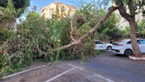 ביום שני השבוע בשעה חמש אחר הצהרים קרס ענף גדול מעץ וותיק ופגע במספר כלי רכב שחנו ברחוב ירושלים סמוך לבניין מספר 9. במזל גדול אין נפגעי גוף.