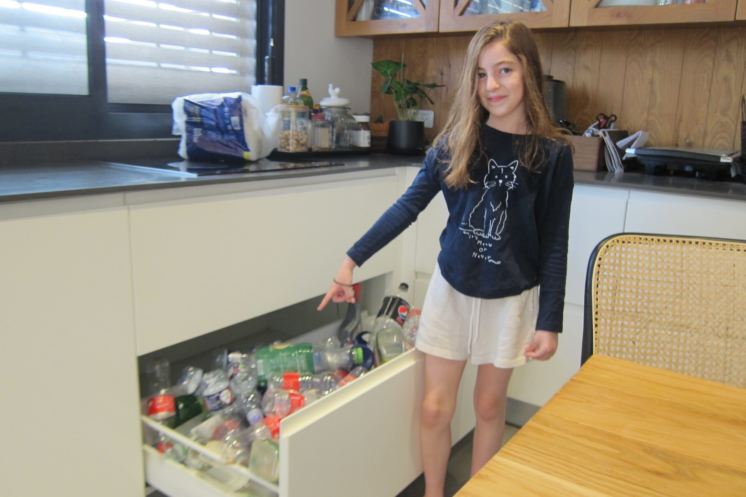 “אני יזמית ומשפיענית וחשבתי שיש בעיה עם התודעה למחזור חומרים בלתי מתכלים. פניתי לראש העיר והצעתי לקיים תחרות בין בתיה”ס בעיר על מחזור. הרעיון נראה לו טוב והוא הפנה אותי לאגף המתאים בעירייה שם הצגתי את התוכנית: כל ילד יאגור בביתו את הדרוש מחזור כמו בקבוקים, קופסאות, שקיות ניילון, וכו’. את הפסולת הוא יביא לביה”ס שלו והילדים יצרו מהם פסלים או יצירות אומנות אחרות וכך ישתתפו בתחרות העירונית. תחרות זו תיצור מוטיבציה ותביא גם להגברת תודעת המחזור אצל כל הילדים. ככה ייעשה העולם ירוק יותר”. כאן פותחת נגה בפני מגירת ארון מלאה בבקבוקי פלסטיק כהדגמה לדוגמה אישית.